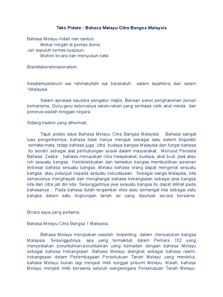 Teks pidato merupakan salah satu bentuk komunikasi satu arah berupa pengungkapan suatu gagasan pokok atau pikiran tentang beberapa hal kepada orang lain dengan. Contoh karangan fakta pt3 terbaik bahasa melayu. Skrip pidato memartabatkan bahasa melayu. Berikut contoh pidato singkat yang bisa kamu jadikan referensi. Pidato merupakan salah satu aktivitas yang biasanya digunakan di dalam beberapa acara tertentu. 11 contoh pidato cinta tanah air. 5 contoh pidato bahasa indonesia. Karena berpidato merupakan kegiatan berbicara. Nah itulah beberapa contoh pidato bahasa inggris lengkap dan artinya dalam bahasa indonesia dengan beragam tema. 14 contoh pidato bahasa jawa tentang sumpah pemuda. Secara umum, pidato adalah pengungkapan gagasan atau pikiran dengan bahasa lisan (berbicara) kepada orang banyak. Contoh pidato pendek bahasa melayu ilmu pengetahuan 3. Perlu kita sadari bahwa kesehatan itu memang mahal harganya.