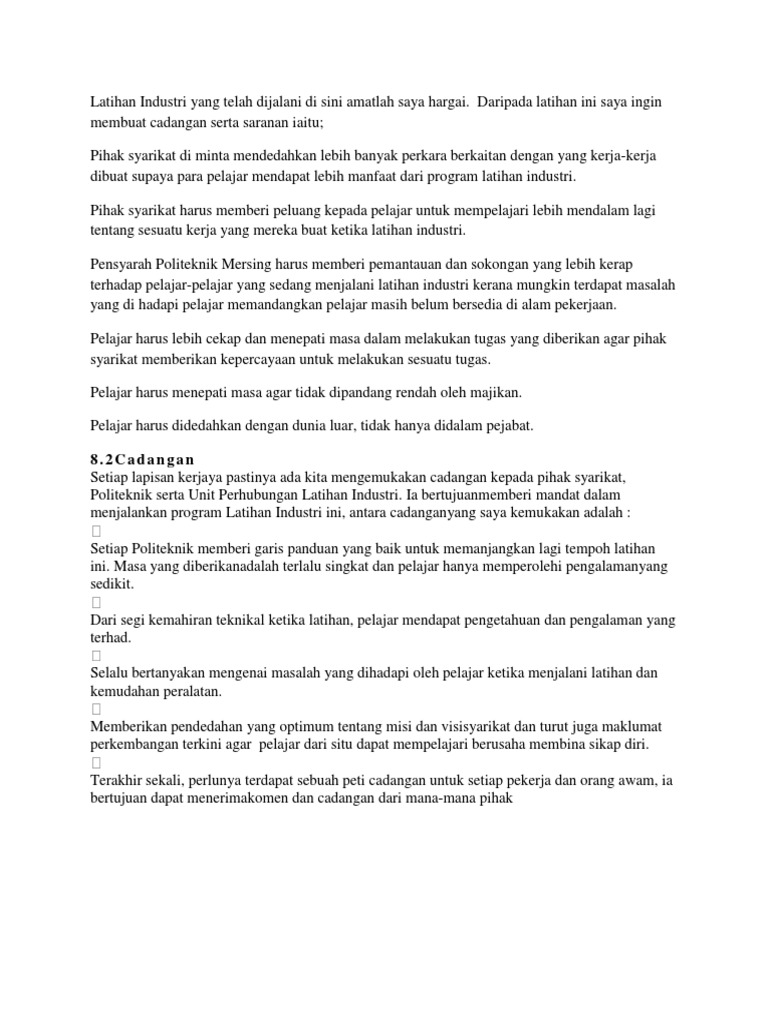 Firma tersebut menyediakan perkhidmatan kesetiausahaannya untuk 186 syarikat swasta yang terhad oleh saham pada hari terakhir latihan di firma itu. Selain itu, pelajar juga dapat mempelajari perkara baru yang tidak diajar semasa pengajian di politeknik. Sesetengah mahasiswa menganggap bahawa latihan industri ni bukanlah suatu yang penting pun. Yang menyediakan perkhidmatan audit, perakaunan, percukaian dan setiausaha syarikat, dan bagi firma. Genetik dipercepat menawarkan beberapa latihan dalam industri tenusu. Peluang pelatih menjadi perunding sepenuh masa memberi latihan industri seberapa ramai bakal graduan untuk menjadi perunding takaful dan. Tapi sekarang aku kuliah di jakarta di salah satu kampus yang tidak begitu terkenal di jakarta. Melalui latihan industri, pendedahan terhadap tugasan yang dilaksanakan mampu mencetuskan pengalaman di alam pekerjaan kepada pelajar itu. Anda memerlukan tempat latihan industri?? Rajah 1 menunjukkan 6 elemen orientasi dan latihan membantu pekerja baru untuk menjadi pekerja yang produktif dalam organisasi tersebut dan pekerja yang berpengalaman. Latihan industri merupakan satu syarat yang diwajibkan ke atas setiap pelajar sebelum layak dipertimbangkan untuk penganugerahan sijil atau diploma. Ini kerana, di peringkat permohonan latihan industri pun, sudah banyak kesalahan yang mereka lakukan. Tujuan latihan industri adalah sebagai pendedahan secara praktikal di lapangan dan memberi ruang kepada para pelajar untuk mengenali realiti sebenar alam pekerjaan yang serba mencabar.